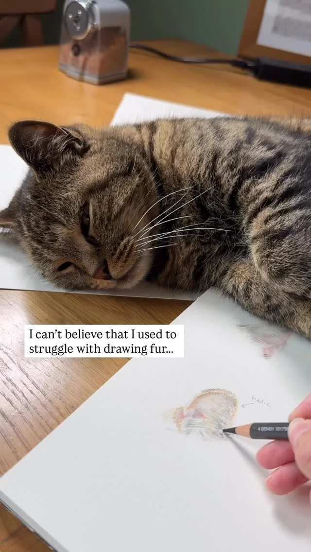 Over time, you'll develop your own rhythm - drawing, erasing, blending with the stump, drawing again. It becomes a kind of dance between these elements. I find myself rotating through the application of pigment, softening with a stump and shaping with an eraser. The effectiveness of each tool will vary based on your paper, but that's part of the fun of discovering what works best for you.