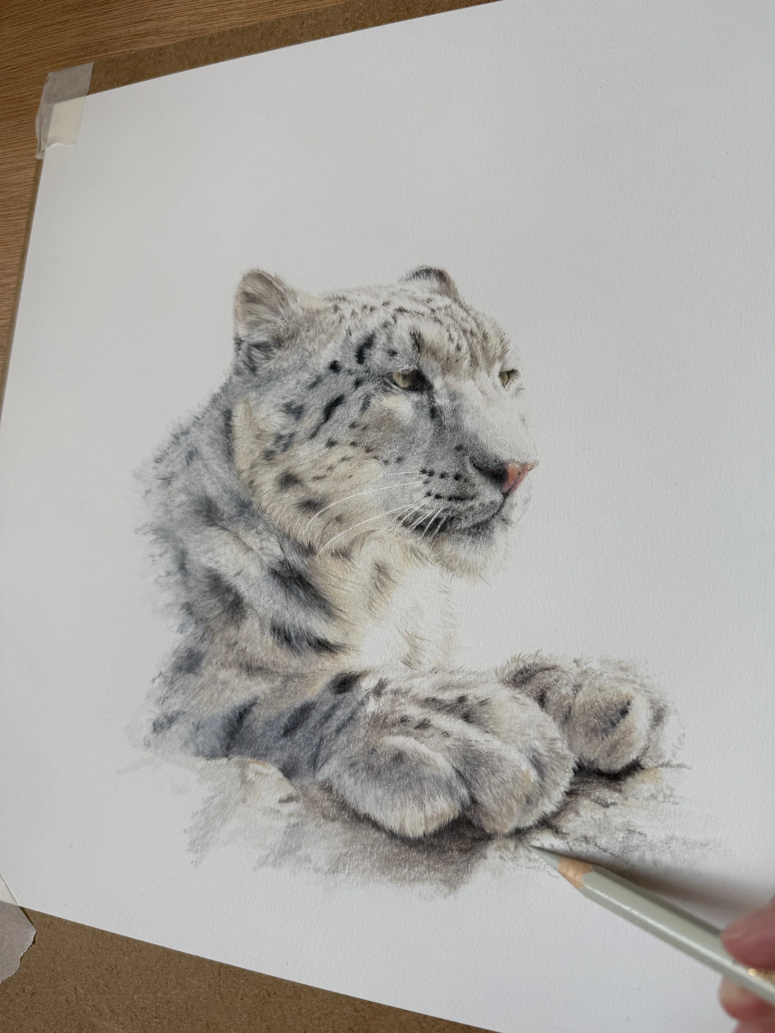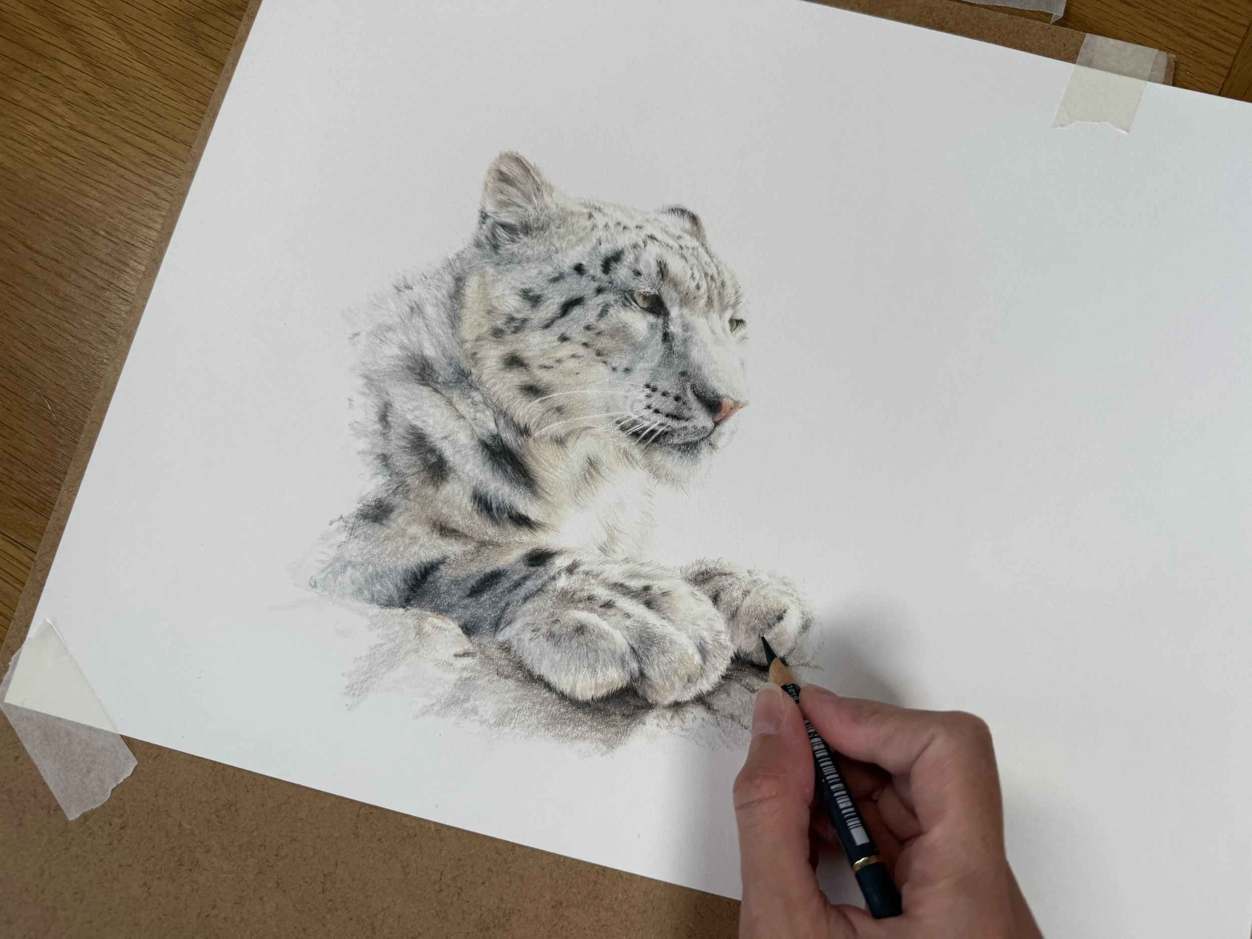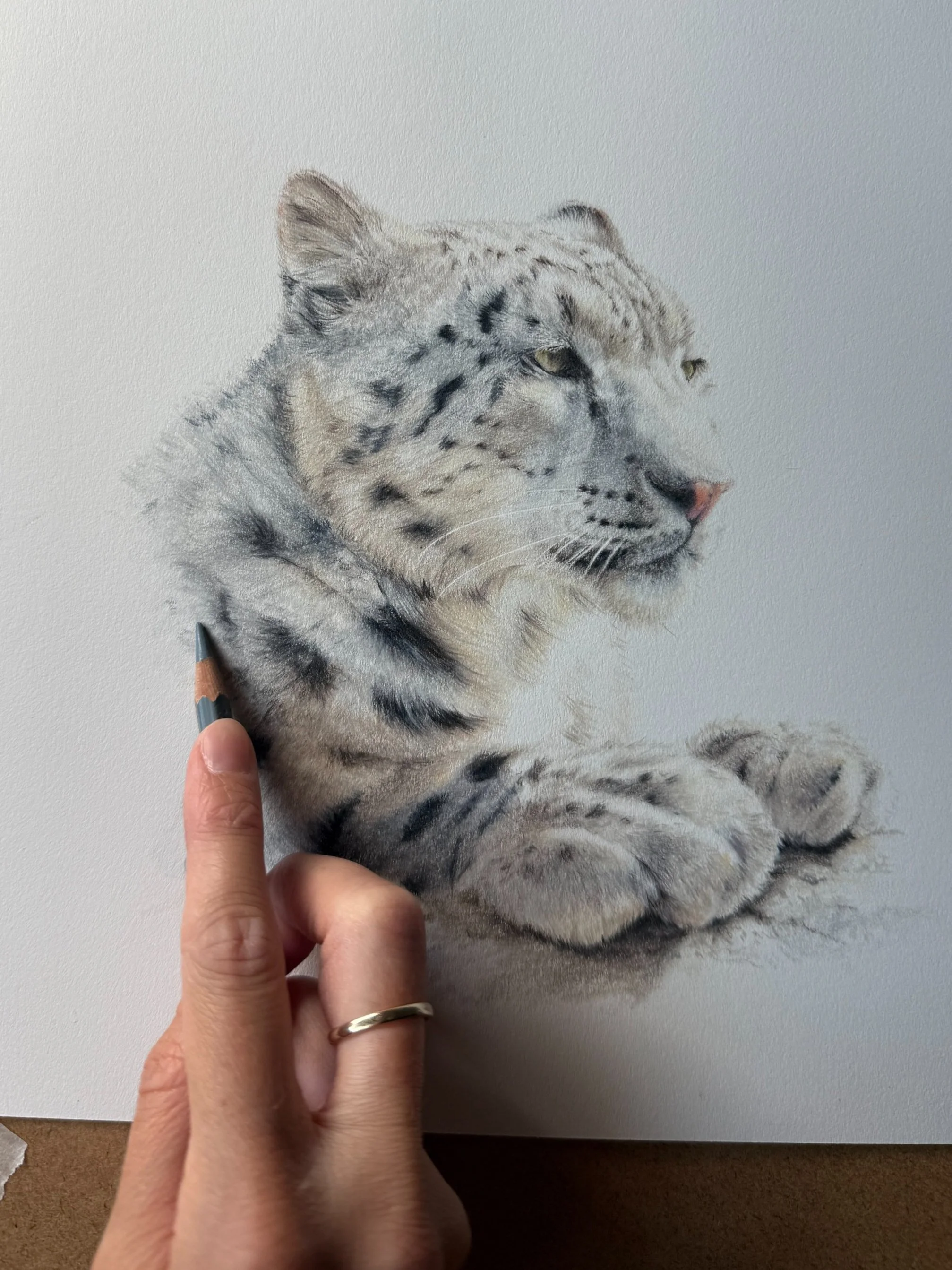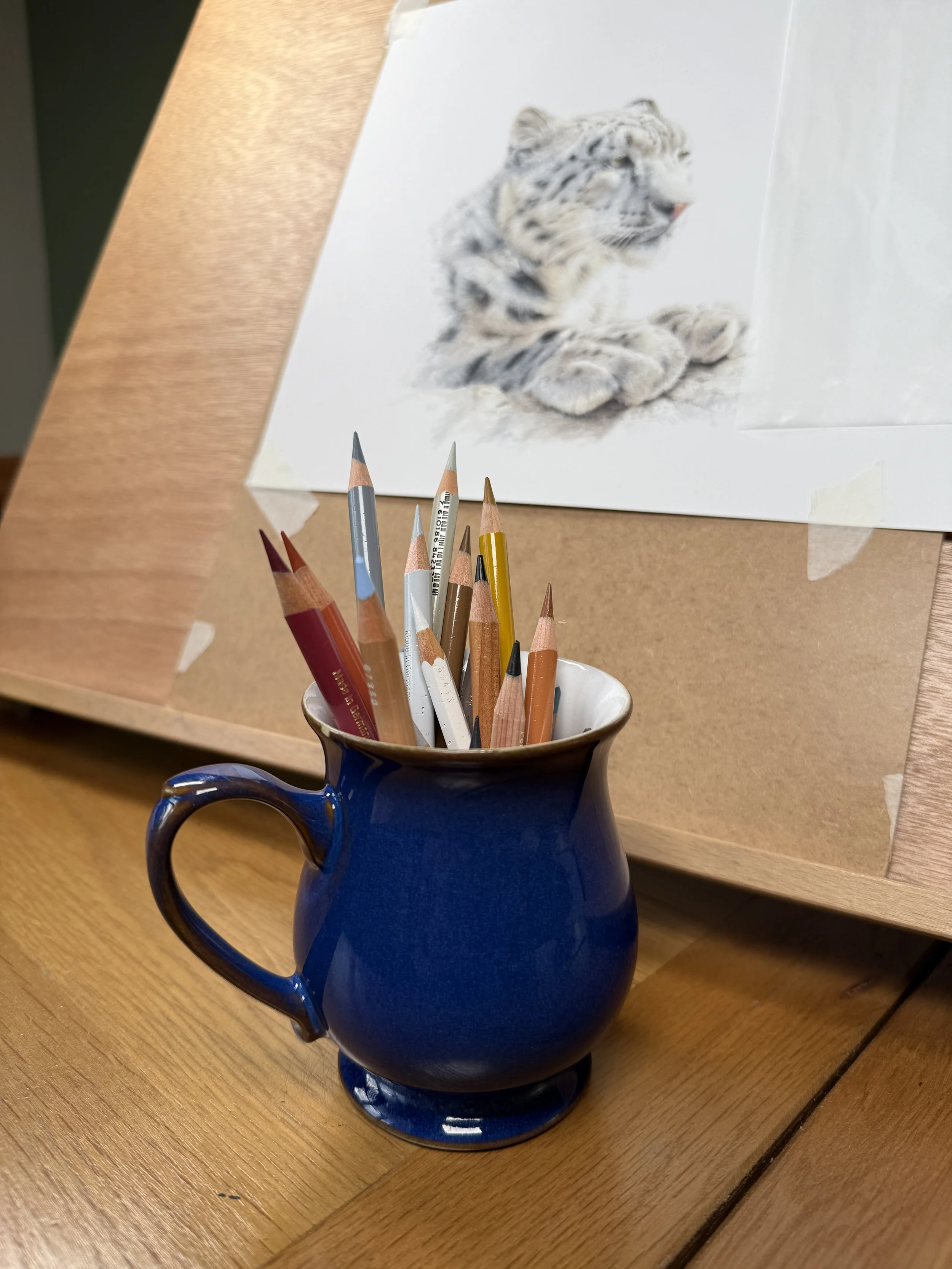 We'll work together on a beautiful snow leopard portrait across three focused sessions, each targeting a key skill: building natural confidence with your strokes, creating soft flowing fur textures, and achieving more with fewer layers. You'll receive detailed reference photos and line art to guide your work, plus foundation videos covering essential techniques to support you whenever you need them.